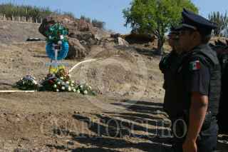 LA HUACANA, MICHOACÁN, 02MARZO2015.- Elementos de la Policía Federal realizaron el día de ayer una ceremonia en el lugar donde fueron apilados el 13 de julio de 2009 los cadáveres de 12 agentes, una mujer incluida, torturados y asesinados por La Familia michoacana, y en cuya memoria se conmemora esa fecha como el Día del Policía Federal. El comisionado de la Policía Federal, Enrique Galindo, aseguró que con la camptura de Servando Gómez Martínez, La Tuta, se cerró "un ciclo". FOTO: ARCHIVO /CUARTOSCURO.COM