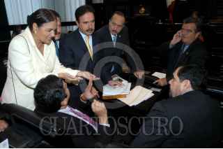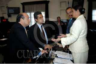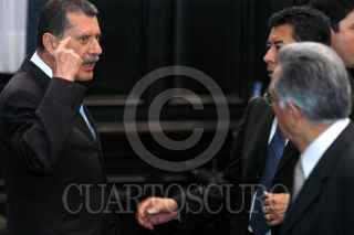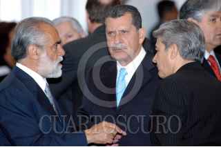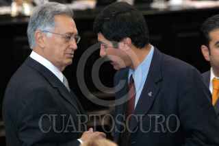 MEXICO, D.F., 04ABRIL2006.- Los senadores Manuel Bartlet, PRI y Javier Corrak, PAN, durante la sesión ordinaria en el Senado. FOTO: Moisés Pablo/CUARTOSCURO.COM