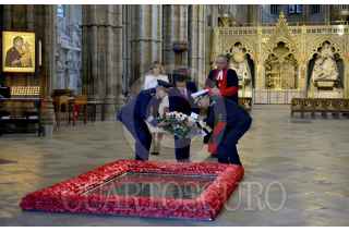 LONDRES, REINO UNIDO, 03MARZO2015.- En la Abadía de Westminster, el Presidente Enrique Peña Nieto y su esposa, la señora Angélica Rivera de Peña, depositaron una ofrenda floral en la Tumba del Soldado Desconocido por conducto de los agregados Militar y Naval de la Embajada de México. A su llegada, John Hall, Decano de Westminster les presentó a los miembros del órgano colegiado de la Abadía. FOTO: PRESIDENCIA /CUARTOSCURO.COM