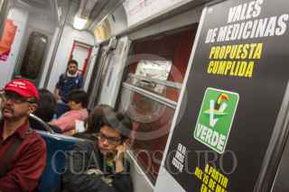 MÉXICO, D.F., 03MARZO2015.- Propaganda del Partido Verde continúa desplegada por diferentes puntos de la ciudad, como el transporte público y los puestos de periódicos y revistas. FOTO: ISAAC ESQUIVEL /CUARTOSCURO.COM