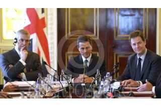 LONDRES, REINO UNIDOS, 4MARZO2015.- El Presidente Enrique Peña Nieto, acompañado del Viceprimer Ministro británico, Nick Clegg, recibió las conclusiones de la primera reunión del grupo de Alto Nivel Empresarial (GANE) México-Reino Unido, ante quienes afirmó que hoy nuestro país vive un proceso de acelerada transformación. FOTO: PRESIDENCIA /CUARTOSCURO.COM