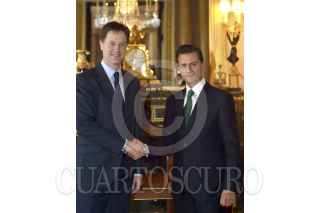LONDRES, REINO UNIDOS, 04MARZO2015.- En el marco de la Visita de Estado que realiza al Reino Unido, el Presidente Enrique Peña Nieto sostuvo el día de hoy un encuentro privado con el Vice Primer Ministro, Nick Clegg. Estuvo acompañado por los Secretarios de Relaciones Exteriores, José Antonio Meade; Hacienda y Crédito Público, Luis Videgaray; Energía, Pedro Joaquín Coldwell; y Economía, Ildefonso Guajardo; así como por el Jefe de la Oficina de la Presidencia, Aurelio Nuño, y el Embajador de México en el Reino Unido Diego Gómez Pickering. FOTO: PRESIDENCIA /CUARTOSCURO.COM