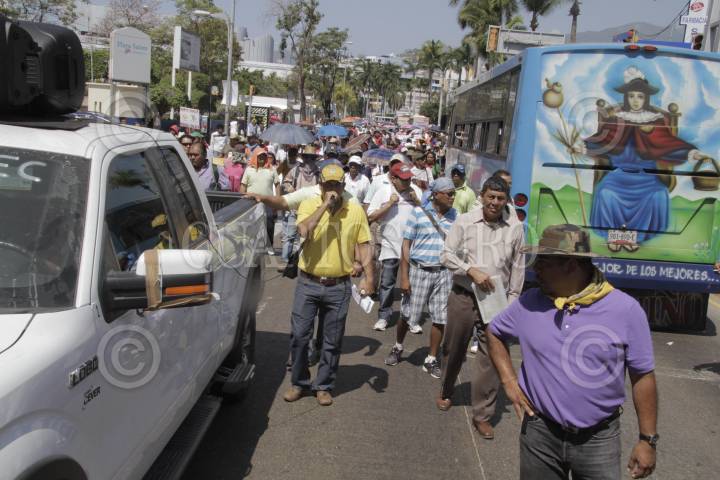 ACAPULCO, GUERRERO, 04MARZO2015.- Integrantes de la Coordinadora Estatal de Trabajadores de la Educación de Guerrero y padres de familia de los 43 normalistas desaparecidos el 26 de septiembre en Iguala, marchan sobre la Costera Miguel Alemán. Acompañados, también por integrantes del Sindicato Único de Servidores Públicos del Estado de Guerrero, demandan la presentación con vida de los estudiantes de la Normal Rural “Raúl Isidro Burgos”. Los burócratas, que trabajan en el plano educativo, reclaman les entreguen una plaza de trabajo toda vez que solo lo hacen de manera interina. Son 22 trabajadores entre maestros, personal administrativo y de apoyo los que no cuentan con una plaza. Los manifestantes salieron de la Diana y caminan sobre la Costera hacia la Base Naval. Se encuentran a la altura de las llamadas Torres Acapulco, cerca ya de la Base Naval. FOTO: BERNANDINO HERNÁNDEZ /CUARTOSCURO.COM