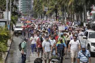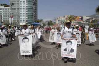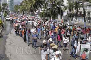 ACAPULCO, GUERRERO, 04MARZO2015.- Integrantes de la Coordinadora Estatal de Trabajadores de la Educación de Guerrero y padres de familia de los 43 normalistas desaparecidos el 26 de septiembre en Iguala, marchan sobre la Costera Miguel Alemán. Acompañados, también por integrantes del Sindicato Único de Servidores Públicos del Estado de Guerrero, demandan la presentación con vida de los estudiantes de la Normal Rural “Raúl Isidro Burgos”. Los burócratas, que trabajan en el plano educativo, reclaman les entreguen una plaza de trabajo toda vez que solo lo hacen de manera interina. Son 22 trabajadores entre maestros, personal administrativo y de apoyo los que no cuentan con una plaza. Los manifestantes salieron de la Diana y caminan sobre la Costera hacia la Base Naval. Se encuentran a la altura de las llamadas Torres Acapulco, cerca ya de la Base Naval. FOTO: BERNANDINO HERNÁNDEZ /CUARTOSCURO.COM