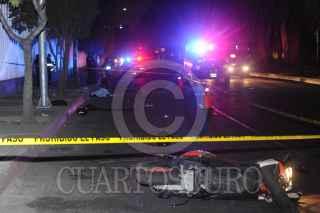 MÉXICO D. F., 05FEBRERO2015.- Un hombre de aproximadamente 30 años, perdió la vida al derrapara con la motoneta que conducía sobre avenida 510 a la altura del Bosque de Aragón en la colonia San Juan De Aragón. Uno más fue trasladado con vida a un hospital cercano. FOTO: LUIS CARBAYO /CUARTOSCURO.COM