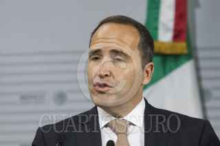 MÉXICO, D.F., 05MARZO2015.- Miguel Ángel Margain, director general del Instituto Mexicano de la Propiedad Industrial, acompañado de Eduardo Sánchez, Vocero de la Presidencia, ofrecieron una conferencia de prensa en el Club Naval. El titular del IMPI aseguró que el año pasado se otorgó mas de 14 mil patentes y registros, dos terceras partes de las que se concedieron en latinoamerica. FOTO: MOISÉS PABLO /CUARTOSCURO.COM
