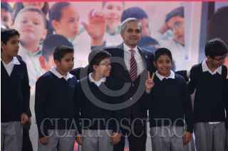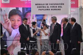 MÉXICO, D.F., 06MARZO2015.- Miguel Ángel Mancera, jefe de gobierno del Distrito Federal, Luis Ignacio Sánchez Gómez, Titular de la Administración Federal de Servicios Educativos en el D.F. y Armando Ahued, Secretario de Salud del D.F., durante la puesta en marcha de la campaña de "Aplicación de la Vacuna del Virus del Papiloma Humano", realizada en la escuela Francisco Giner de los Ríos de la colonia Obrera. FOTO: ADOLFO VLADIMIR /CUARTOSCURO.COM
