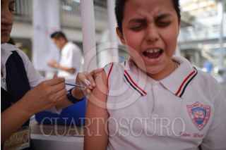 MÉXICO, D.F., 06MARZO2015.- Enfermeras de los Servicios de Salud del Gobierno del Distrito Federal vancunan a niños de la escuela Francisco Giner de los Ríos de la colonia Obrera, contra el Virus del Papiloma Humano. El VPH son grupos diversos de virus ADN pertenecientes a la familia de los Papillomaviridae y representa una de las infecciones de transmisión sexual más común, se conocen más de 100 tipos virales que en relación a su patogenia oncológica, se clasifican en tipos de alto y de bajo riesgo oncológico. La vacuna contra el VPH deberán aplicarse antes de tener cualquier tipo de actividad sexual con otra persona. Las vacunas son inyectadas en una serie de tres dosis dentro de un periodo de seis meses. Según los últimos estudios, alrededor del 3% de las estudiantes de escuela preparatoria reportaron haber tenido sexo vaginal por primera vez antes de los 13 años de edad. Los Servicios de Salud del Distrito Federal lanza la campaña de vacunación y recomiendan vacunar a los hombres que cursen el 5º año de primaria o que tengan 11 años de edad. FOTO: ADOLFO VLADIMIR /CUARTOSCURO.COM
