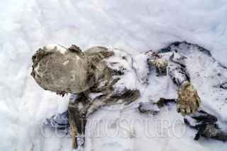 CIUDAD SERDÁN, PUEBLA, 06MARZO2015.- La semana pasada se realizó el hallazgo de dos cadáveres momificados enterrados en el Pico de Orizaba, encontrados por los alpinistas Hilario Aguilar Aguilar y Francisco Rodríguez, presidente del Club Alpino Mexicano y director de Protección Civil, ambos en este municipio, quienes revelaron que los cuerpos estaban abrazos y vestían suéter rojo y chamarra azul. Se dice que los restos serían de montañistas desaparecidos el 2 de noviembre de 1959. FOTO: FACEBOOK / GRUPO DELTA /CUARTOSCURO.COM