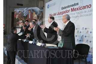 MÉXICO, D.F., 07MARZO2015.- Ministro Luis María Aguilar Morales Presidente de la SCJN y del CJF, reconoce trayectoria a impartidores de Justicia en el Día del Juzgador Mexicano en la SCJN, a 10 Juzgadores, federales y locales, y felicitando a todas las personas que integran al Poder Judicial de la Federación. FOTO: SCJN /CUARTOSCURO.COM