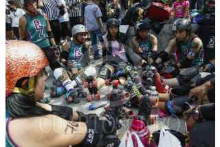 MÉXICO, D.F., 07MARZO2015.- Chicas de entre 20 a 30 años de la liga Roller Derby se enfrentan en un partido en un parque de Polanco. Roller Derby es un deporte de contacto, originario de Estados Unidos, basado en el patinaje sobre ruedas y normalmente practicado por mujeres. Mañana domingo se celebra el Día Internacional de la Mujer, de acuerdo a cifras oficiales el 25 por ciento de los 28 millones de hogares están dirigidos por mujeres, es decir 6.9 millones de familias reconocen a una mujer como jefa; el 84% de los hogares monoparentales son encabezados por mujeres y 16% por hombres. FOTO: RODOLFO ANGULO /CUARTOSCURO.COM