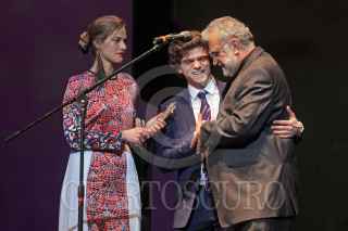 ZAPOPAN, JALISCO, 07MARZO2015.-Los protagonistas de la cinta Io e t, del Director Italiano, Bernardo Bertolucci durante la entrega del Premio Mayahuel Internacional, esto en la Gala Inaugural de la edición 30 del Festival Internacional de Cine en Guadalajara FICG 2015, que se llevo a cabo en las instalaciones del Auditorio Telmex. FOTO: FERNANDO CARRANZA GARCIA / CUARTOSCURO.COM