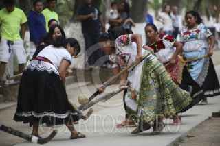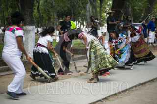 MORELIA, MICHOACÁN, 08MARZO2015.- Se realizo el 11 Encuentro de Uárhukua Chanakua, los antecedentes del juego de pelota purépecha se remontan a los orígenes de los primeros pobladores de lo que ahora es Michoacán, siglos antes de la era común. Cuenta una leyenda en México, que cuando renació Marte, la quinta estrella, y desencadenó catástrofes naturales en contra de la Tierra, el pueblo purépecha inventó el juego de pelota como un remedio para nivelar el cosmos. Esta práctica recibe varios nombres de acuerdo a la modalidad y la zona donde se practica. La modalidad más popular es el juego con pelota de trapo, que se conoce como uárhukua o Pasiri a kuri. FOTO: JUAN JOSÉ ESTRADA SERAFÍN /CUARTOSCURO.COM