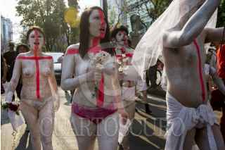 MÉXICO, D.F., 08MARZO2015.- El denominado Bloque Rosa realizó una manifestación sobre paseo de la Reforma por los derechos femeninos, en el marco del día de la Mujer. FOTO: ISAAC ESQUIVEL /CUARTOSCURO.COM