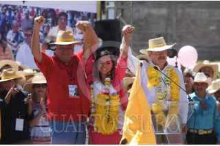 ACAPULCO, GUERRERO, 08MARZO2015.- Beatriz Mojica inició su campaña como candidata del Partido de la Revolución Democrática a la gubernatura del estado con un acto proselitista en el Puerto. La abanderada del PRD estuvo acompañada de Graco Ramírez, gobernador de Morelos; y Silvano Aureoles Conejo, candidato del PRD a la gubernatura de Michoacán. FOTO: JOSÉ I. HERNÁNDEZ / CUARTOSCURO.COM