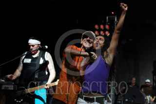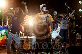 LETICIA, COLOMBIA, 08MARZO2015- Manu Chao acompañado de Ruben Albarrán, vocalista de Cafe Tacuba y la cantante chilena Moyenei Valdés, durante el Festival Ama-Zonas en defensa de la selva amazonica. FOTO: FÉLIX MÁRQUEZ /CUARTOSCURO.COM