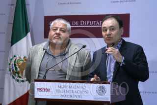 MÉXICO, D.F., 09MARZO2015.- Los diputados del PT Francisco Alfonso Durazo Montaño y Manuel Huerta Ladron de Guevara en conferencia de prensa anunciaron su postura ante la propuesta de ley general de aguas que pretende aprobarse en la Cámara de Diputados. FOTO: SAÚL LÓPEZ /CUARTOSCURO.COM