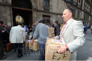 MEXICO, D.F., 10MARZO2015.- Ahorradores estafados por FICREA acudieron a las instalaciones de la Secretaría de Hacienda en el Palacio Nacional para hacer entrega de 12 cajas con expedientes de personas defraudadas. FOTO: LUIS CARBAYO /CUARTOSCURO.COM
