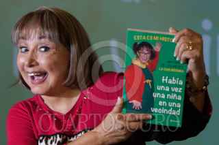 MÉXICO, D.F., 11MARZO2015.- María Antonieta de las Nieves "La Chilindrina" presentó su libro "Había una vez una niña en la vecindad" en compañía de su familia; su esposo Gabriel Fernández y sus hijos Gabriel Fernández y Verónica Fernández. FOTO: MOISÉS PABLO /CUARTOSCURO.COM