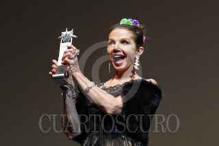 GUADALAJARA, JALISCO, 06MARZO2015.-Las Actriz española, Victoria Abril fue homenajeada con el Premio Maguey “Actriz de Culto”, esto en las instalaciones de Teatro Diana y en el marco de la edición 30 del Festival Internacional de Cine en Guadalajara, FICG 2015. FOTO: FERNANDO CARRANZA GARCIA / CUARTOSCURO.COM