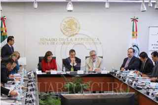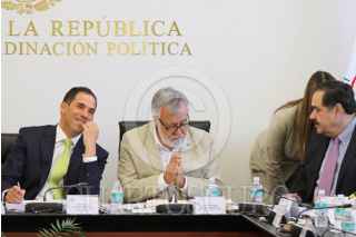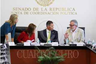 MÉXICO, D.F., 12MARZO2015.- Alejandro Encinas, senador por el PRD y Emilio Gamboa Patrón, durante la reunión de Comisión Unidas para presentar el proyecto de dictamen de la Ley de Transparencia y Acceso a la Información en el Senado de la República. FOTO: ADOLFO VLADIMIR /CUARTOSCURO.COM