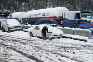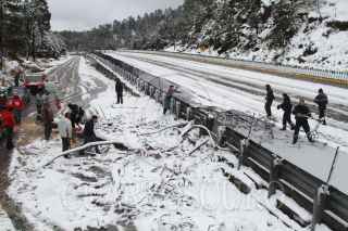 MÉXICO, D.F., 12MARZO2015.- Una fuerte nevada tomó por sorpresa a los automovilistas que criculaban sobre la autopista México-Puebla a la altura de Río Frío, en el Estado de Mèxico. Decenas de vehículos quedaron varados en el lugar luego de la elementos de la Policía Federal cerraran la vialidad por seguridad. FOTO: SAÚL LÓPEZ /CUARTOSCURO.COM