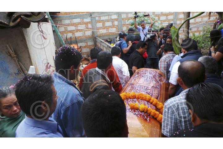 AHUACOUTZINGO, GUERRERO, 12MARZO2015.- En Pochutla pueblo natal de Aide Nava, precandidata a la presidencia municipal de ese municipio, fue sepultada por su familiares y amigos, al último adios de política asistió Sebastián de la Rosa Peláez, los asistentes exigieron justicia por el artero asesinato de la precandidata y militante del Nueva Izquierda en Guerrero. FOTO: JOSÉ I. HERNÁNDEZ / CUARTOSCURO.COM