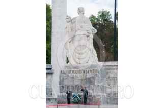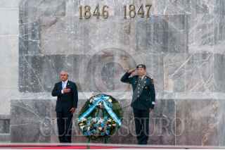 MÉXICO, D.F., 13MARZO2015.- Otto Pérez Molina, mandatario de la República de Guatemala, acudió al Altar de la Patria en la Primera Sección del Bosque de Chapultepec a colocar una ofrenda floral en el marco de su visita a México. FOTO: DIEGO SIMÓN SÁNCHEZ /CUARTOSCURO.COM