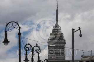 MÉXICO, D.F., 13MARZO2015.- Cielo nublado y con amenaza de lluvia tras un par de días en donde los capitalinos fueron sorprendidos con intensas lluvias y nieve en las zonas altas como el Ajusco, mientras tanto, las palomas posan en las lamparas del Zócalo y de fondo la emblemática Torre Latinoamericana. FOTO: MOISÉS PABLO /CUARTOSCURO.COM