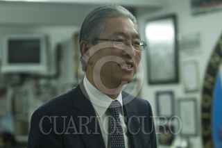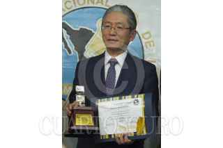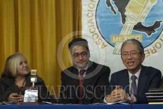 MÉXICO, D.F., 13MARZO2015.- La asociación Nacional de Locutores entrego el micrófono de oro al embajador de Corea en México, Seong Hoa Hong, quien dejara su puesto en los próximos días. Asistieron el secretario de la Asociación Federico Campos y Rosalia Buáum, presidenta. FOTO: ISABEL MATEOS /CUARTOSCURO.COM
