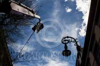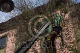 MEXICO, D.F., 14MARZO2015.- En la calle República de Brasil, en el Centro Histórico, el fuerte viento desprendió una lámina del techo de un edificio, quedando esta atorada en las ramas de un árbol. Bomberos realizaron maniobras para retirarla ante el riesgo de que pudiera caer sobre los peatones. FOTO: DAVID POLO /CUARTOSCURO.COM