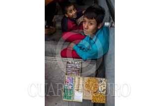 MEXICO, D.F, 14MARZO2015.- De 2 a 5 pesos cuestan los dulces que estos niños venden en las escaleras del metro Pino Suarez. De acuerdo con cifras del 2007 de la unesco, en México uno de cada ocho niños entre los 5 y los 17 años trabaja, violando su derecho a la no explotación y desarrollo digno. FOTO: DAVID POLO /CUARTOSCURO.COM