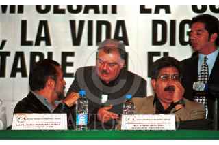 Francisco Hernández Juárez, presidente de la Unión Nacional de Trabajadores y Alvaro López Ríos secretario del Congreso Agrario Permanente, estuvieron presentes durante la Asamblea Constitutiva en la cual se crea El Frente Sindical, Campesino y Sociol, tiene como objetivo impulsar la soberanía alimentaria, el empleo, la vida digna y el desarrollo en el campo y la ciudad. FOTO : Sandra Perdomo/ CUARTOSCURO