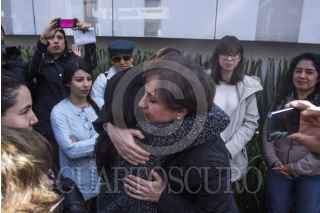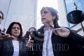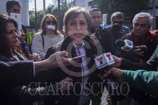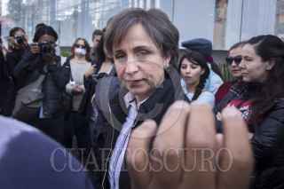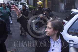 MÉXICO, D.F., 16MARZO2015.- La Periodista Mexicana Carmen Aristegui, acudió a las afueras de las instalaciones de MVS sobre Mariano Escobedo donde se reunión con su equipo de colaboradores y dio unas palabras a la prensa donde dio a conocer que seguirá una lucha legal contra MVS junto a su equipo luego que ayer por la noche la empresa dio por terminada la relación de trabajo con la Periodista. FOTO: ENRIQUE ORDÓÑEZ /CUARTOSCURO.COM