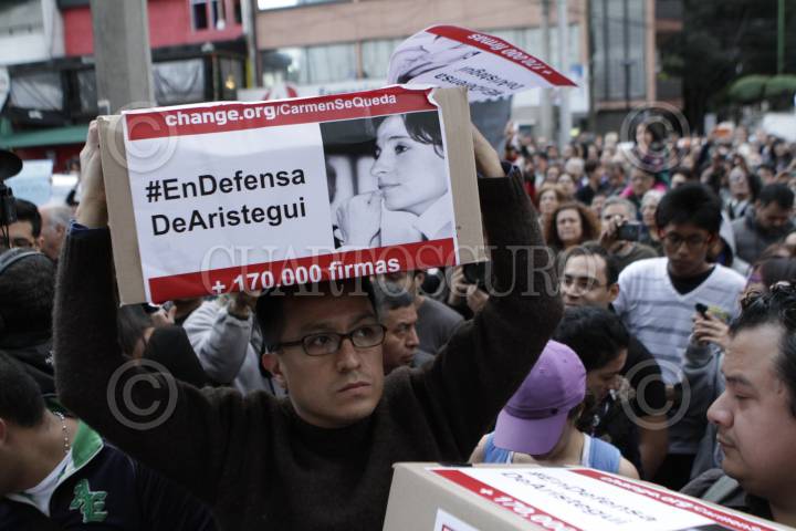 MÉXICO, D.F., 16MARZO2015.- Radioescuchas acudieron a manifestarse en solidaridad con la periodista Carmen Aristegui en las instalaciones de MVS Radio donde pidieron su reinstalación luego de que la periodista fue despedida por participar en la iniciativa Méxicoleaks. FOTO: IVÁN STEPHENS /CUARTOSCURO.COM