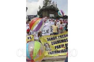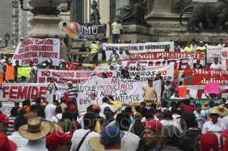 MÉXICO, D.F., 17MARZO2015.- Integrantes de la Unión Nacional de Maquineros, marcharon del Ángel de la Independencia hacia la Secretaria de Gobernación para pedir a las autoridades de la dependencia regulen los permisos para que maquinas tragamonedas puedan operar legalmente. FOTO: SAÚL LÓPEZ /CUARTOSCURO.COM