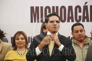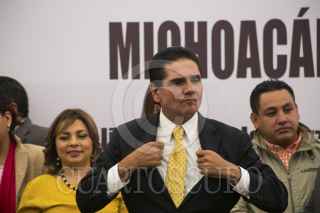 MORELIA, MICHOACÁN, 17MARZO2015.- Silvano Aureoles Conejo, arribó al Instituto Electoral de Michoacán (IEM), para llevar a cabo su registro de candidato a la gubernatura como abanderado del PRD. Militantes de diversos distritos se dieron cita para acompañar al abanderado del Sol Azteca, durante su registro también estuvieron presentes el dirigente nacional y estatal del PRD, Carlos Navarrete y Carlos Torres Piña. Durante el registro, ambos líderes emitieron breves mensajes a los militantes, por su parte, Carlos Navarrete expresó que en Michoacán ya están listos para iniciar campañas en todos los rincones de la entidad y lograr los objetivos del PRD, recuperar la administración estatal. FOTO: JUAN JOSÉ ESTRADA SERAFÍN /CUARTOSCURO.COM