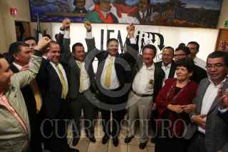 MORELIA, MICHOACÁN, 17MARZO2014.- Silvano Aureoles Conejo, se registró esta tarde en medio de un mitín multitudinario ante el Instituto Electoral de Michoacán ( IEM ) como candidato a Gobernador por el Partido de la Revolución Democratica (PRD). FOTO: ALAN ORTEGA / CUARTOSCURO.COM