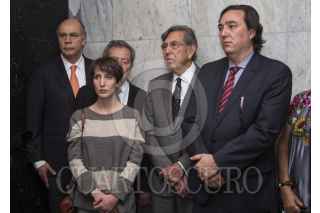 MÉXICO, D.F., 18MARZO2015.- El ingeniero Cuauhtémoc Cardenas, acompañado por sus hijos Celeste y Cuauhtémoc, además de Porfirio Muñoz Ledo, Alejandro Chanona, Ifigenia Martínez y Silvano Aureoles, montaron una guardia de honor en el mausoleo del ex presidente Lázaro Cárdenas del Río, en el marco del aniversario de la Expropiación Petrolera. FOTO: ISAAC ESQUIVEL /CUARTOSCURO.COM