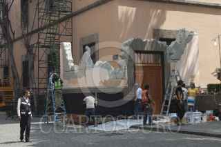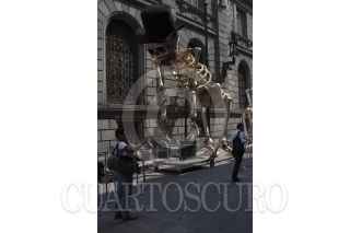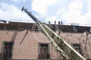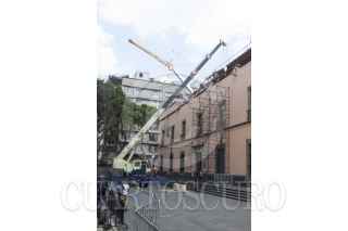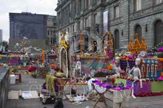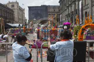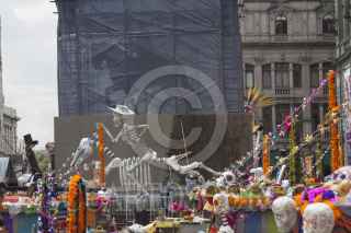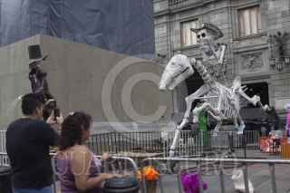 MÉXICO, D.F., 18MARZO2015.- Calaveras gigantes se han colocado en los alrededores de las calles de Tacuba, Donceles, Xicontétl y el callejón Marconi que se van a utilizar para la producción de la película del 007 la cual se va a realizar en la antigua sede del Senado. FOTO: MOISÉS PABLO /CUARTOSCURO.COM
