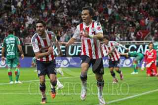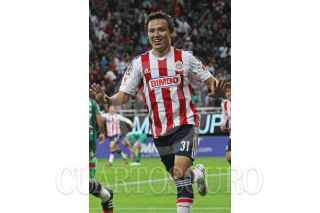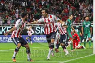 ZAPOPAN, JALISCO, 18MARZO2015.-Erick Torres jugador de Chivas, celebra su gol, mismo que da el triunfo a su equipo de 1-0, en partido correspondiente a la semifinal de la Copa MX, entre los equipos de las Chivas del Guadalajara frente a Jaguares de Chiapas, que se lleva a cabo esta noche en el Estadio Omnilife. FOTO: FERNANDO CARRANZA GARCIA / CUARTOSCURO.COM