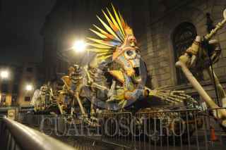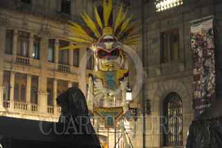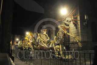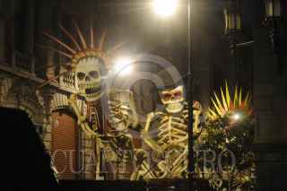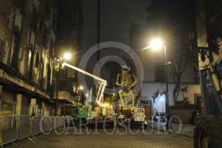 MÉXICO D. F., 19FEBRERO2015.- Todo está listo para la grabación de algunas escenas del Film, James Bond que se realizara en calles del centro Histórico, en donde se montó espectacular escenario con calaveras de más de 3 metros de altura. FOTO: LUIS CARBAYO /CUARTOSCURO.COM