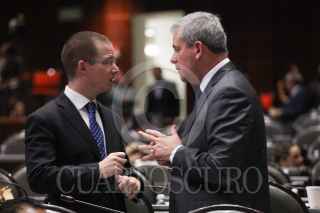 MÉXICO, D.F., 19MARZO2015.- Los diputados panistas Ricardo Anaya y Marcelo Torres, conversan durante la sesión en la Cámara de Diputados. FOTO: SAÚL LÓPEZ /CUARTOSCURO.COM