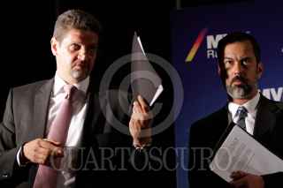 MÉXICO, D.F., 19MARZO2015.- Felipe Chao, vicepresidente de MVS, y José Antonio Vega, director de noticias de MVS, anunciaron en conferencia de prensa que, a nombre de MVS Radio, la relación laboral con la periodista Carmen Aristegui ha terminado. FOTO: IVÁN STEPHENS /CUARTOSCURO.COM