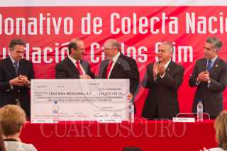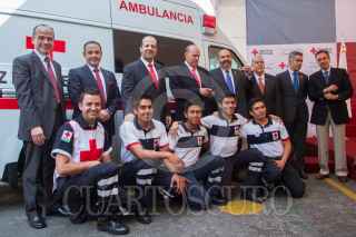 MÉXICO, D.F., 20MARZO2015.- La fundación Carlos Slim, dono mas de 14 millones a la Cruz Roja. El Lic. Héctor Slim, realizo la entrega de una ambulancia que será utilizada en la delegación de la Cruz Roja del estado de Durango, entrego varios equipos de computo para las diferentes delegaciones en el país. El presidente de la Cruz Roja nacional dio su agradecimiento y dos reconocimientos a la fundación. FOTO: ISABEL MATEOS /CUARTOSCURO.COM