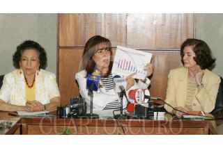 MÉXICO D.F. 11ABRIL2006.- Ifigenia Martínez, Yeidckol Polevnsky y Teresa Juárez, se reunieron para ofrecer una conferencia de prensa, donde presentaron pruebas que desmienten los spots contra el candidato presidencial del PRD, Andrés Manuel López Obrador. FOTO: Diego Gallegos/CUARTOSCURO.COM