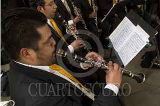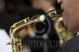 MEXICO, D.F., 21MARZO2015.- Por espacio de una hora, los instrumentos de la Banda Sinfónica de la Ciudad de México resonaron en el Museo Panteón de San Fernando, ante un público formado por vecinos de la zona y personas que paseaban por el lugar. En su repertorio la banda interpretó piezas clásicas y populares. FOTO: DAVID POLO /CUARTOSCURO.COM
