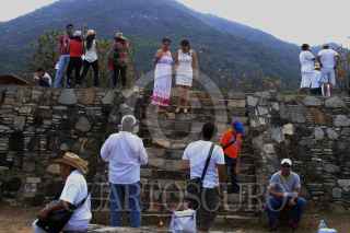 CHILPANCINGO, GUERRERO, 21MARZO2015.- Cientos de personas acudieron al equinoccio de primavera en la ruinas de Tehuacalco, sitio arqueológico asociado a la cultura Yope. Este sitio arqueológico fue abierto al público en el 2008 y cada 21 de marzo acuden aproximadamente 1100 personas. Eel lugar fue vigilado por la policía municipal, elementos de protección civil y transito. FOTO: JOSÉ I. HERNÁNDEZ /CUARTOSCURO.COM