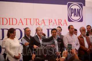 MORELIA, MICHOACÁN, 22MARZO2015.- Luisa María Calderón Hinojosa, candidata del PAN a la gubernatura realizó su registró ante el Instituto Electoral de Michoacán (IEM). La abanderada panista estuvo acompañada por los principales cuadros del blanquiazul entre ellos, su hermano el ex presidente de la República, Felipe Calderón Hinojosa, Diego Fernández de Ceballos, Ernesto Cordero y Salvador Vega Casillas. FOTO: ALAN ORTEGA / CUARTOSCURO.COM