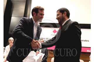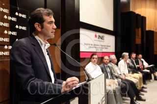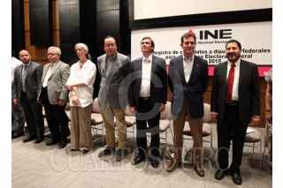 MÉXICO, D.F., 22MARZO2015.- Lorenzo Córdova, consejero presidente del INE, y Martí Batres Guadarrama, líder nacional de MORENA, durante la ceremonia de registro de candidatos a diputados federales en las instalaciones del Instituto Nacional Electoral. FOTO: INE /CUARTOSCURO.COM